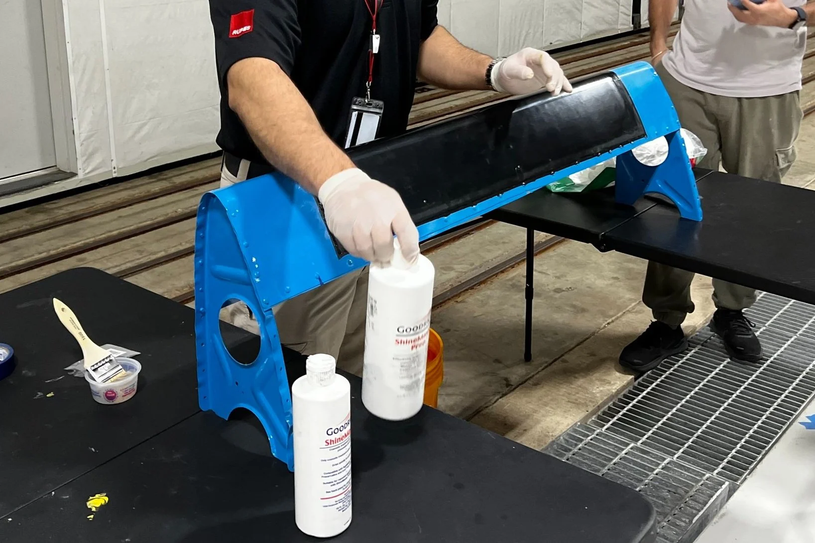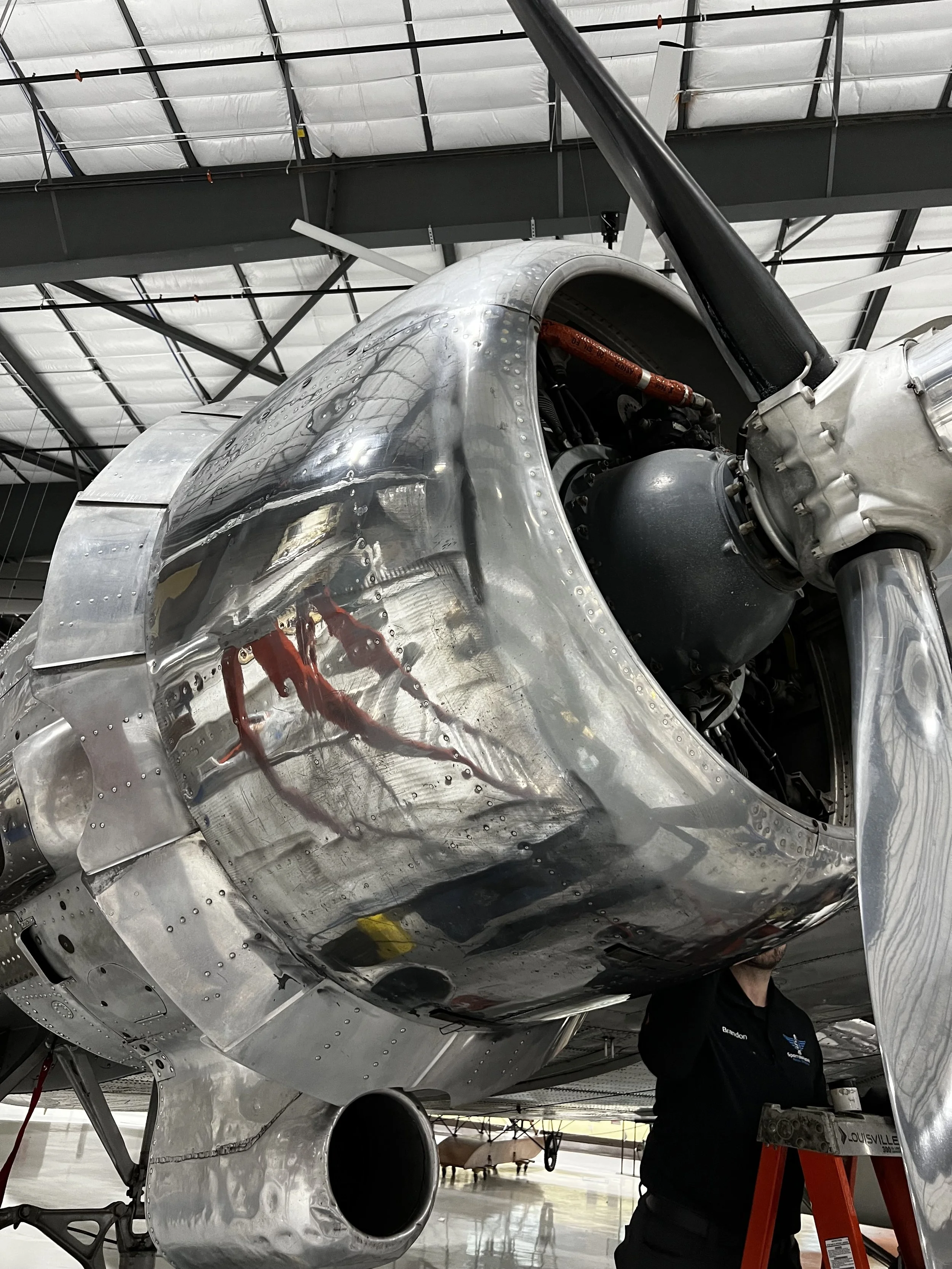 Our Bright Work includes areas such as wing leading edges, engine cowling, propellers, landing gear, and other exposed metal components. The goal of bright work is to ensure these metal surfaces maintain a clean, shiny, and well-maintained appearance, enhancing the overall aesthetic appeal of the aircraft.